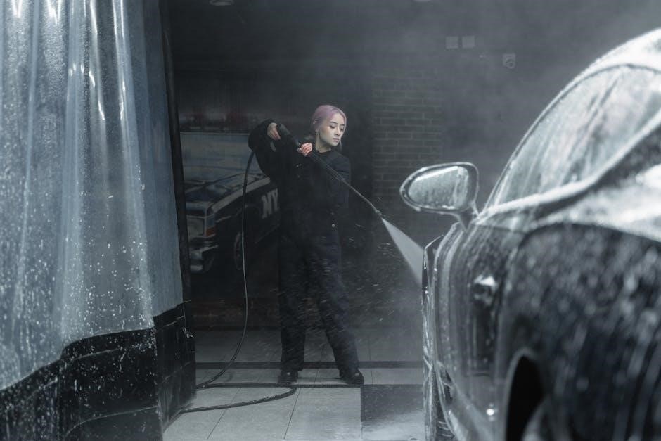 Soap applicators, often integrated into the detergent tank system, draw and mix detergent with the water stream. PowerFit line compatibility allows for using different line types for specific tasks. Understanding each accessory’s function is crucial for achieving optimal results. Always select the appropriate nozzle for the surface being cleaned to avoid damage, and ensure the soap applicator is correctly adjusted for effective detergent use.